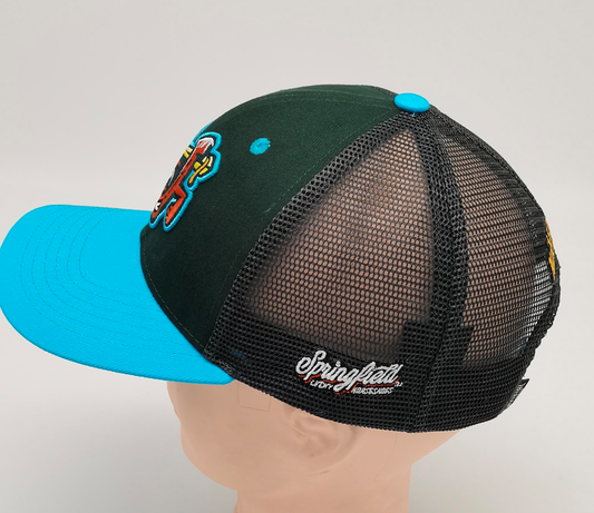 Black, Green or Navy & Sapphire Blue Mesh Snapback Hat, featuring 3 Lucky Horseshoes Logos