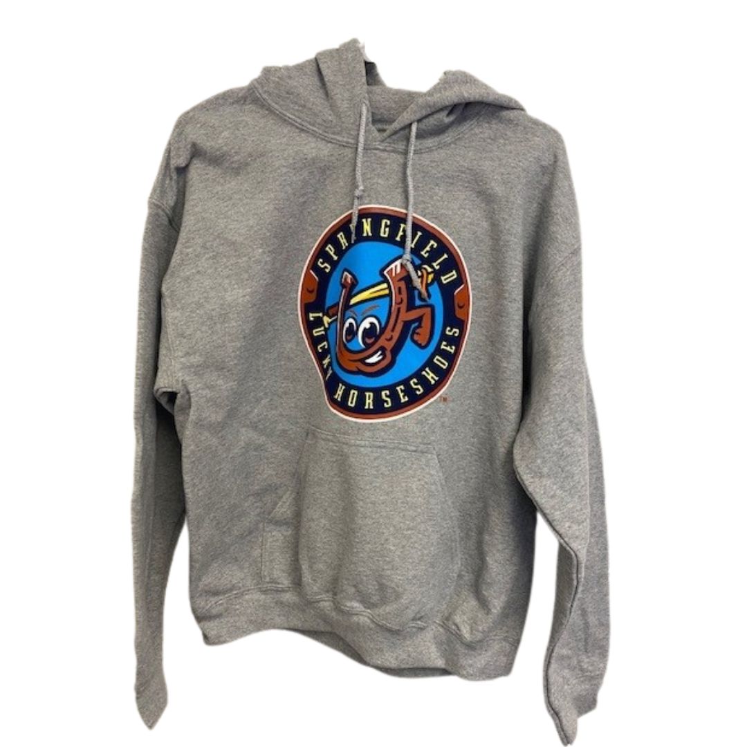 A Gildan Gray Springfield Lucky Horseshoes primary logo Hoodie